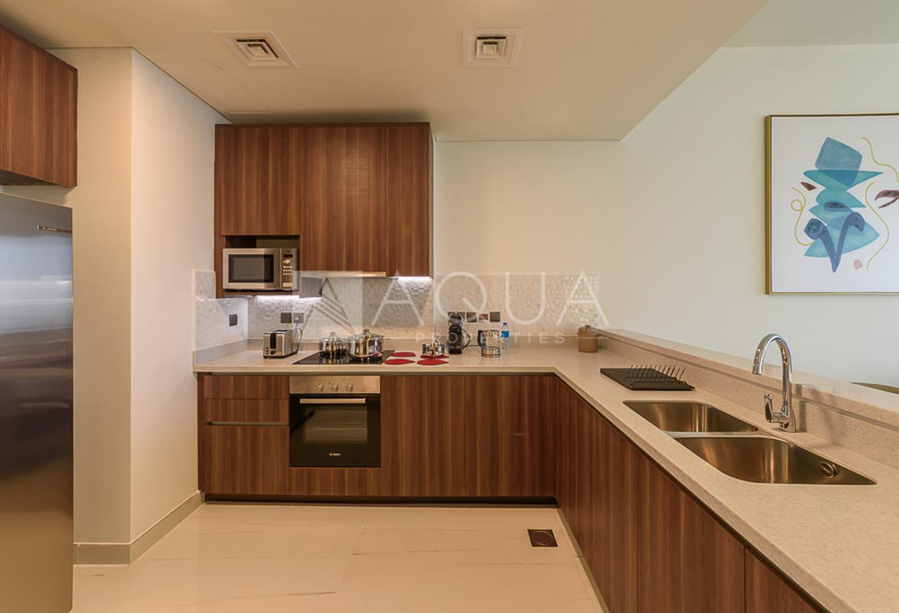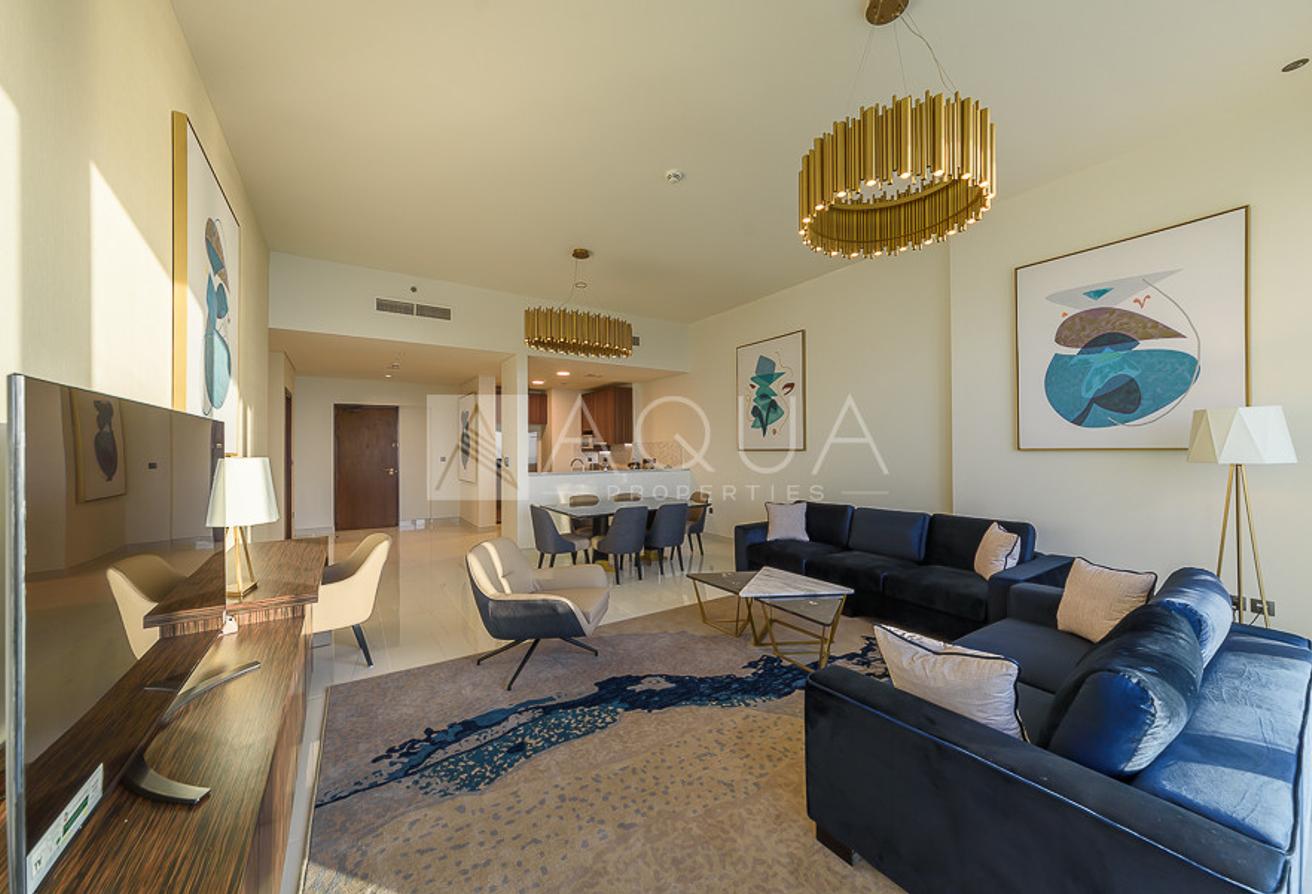 AQUA Properties is pleased to offer this brand-new fully-furnished ready-to-move-in 2-bedroom plus maid's room apartment for rent with a breathtaking palm view in Avani Palm View Hotel & Suites, Dubai Media City.