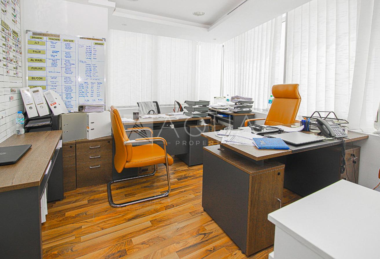 AQUA Properties proudly presents this fully-fitted office available in Mazaya Business Avenue. The unit is well kept and has a nice community view and is divided with 3 partitions. The office is set on a high floor overlooking Jumeirah park and JLT community.