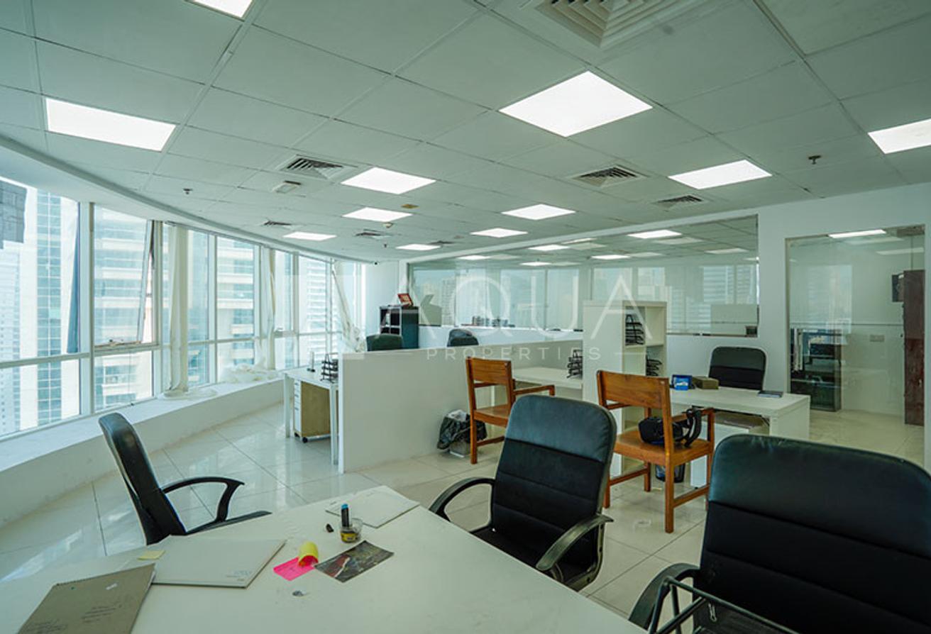 AQUA Properties, is pleased to introduce to the market this bright office available for rent in the Fortune Tower, Jumeirah Lakes Towers (JLT). This spacious commercial space covers an area of 1,957.20 square feet (as per the title deed) and comes fully- fitted. The unit features a beautiful lake view. It is set in a prime location, near the metro station. It has basic needs of the owners and the tenants with facilities such as security, modern premises, high flooring etc.