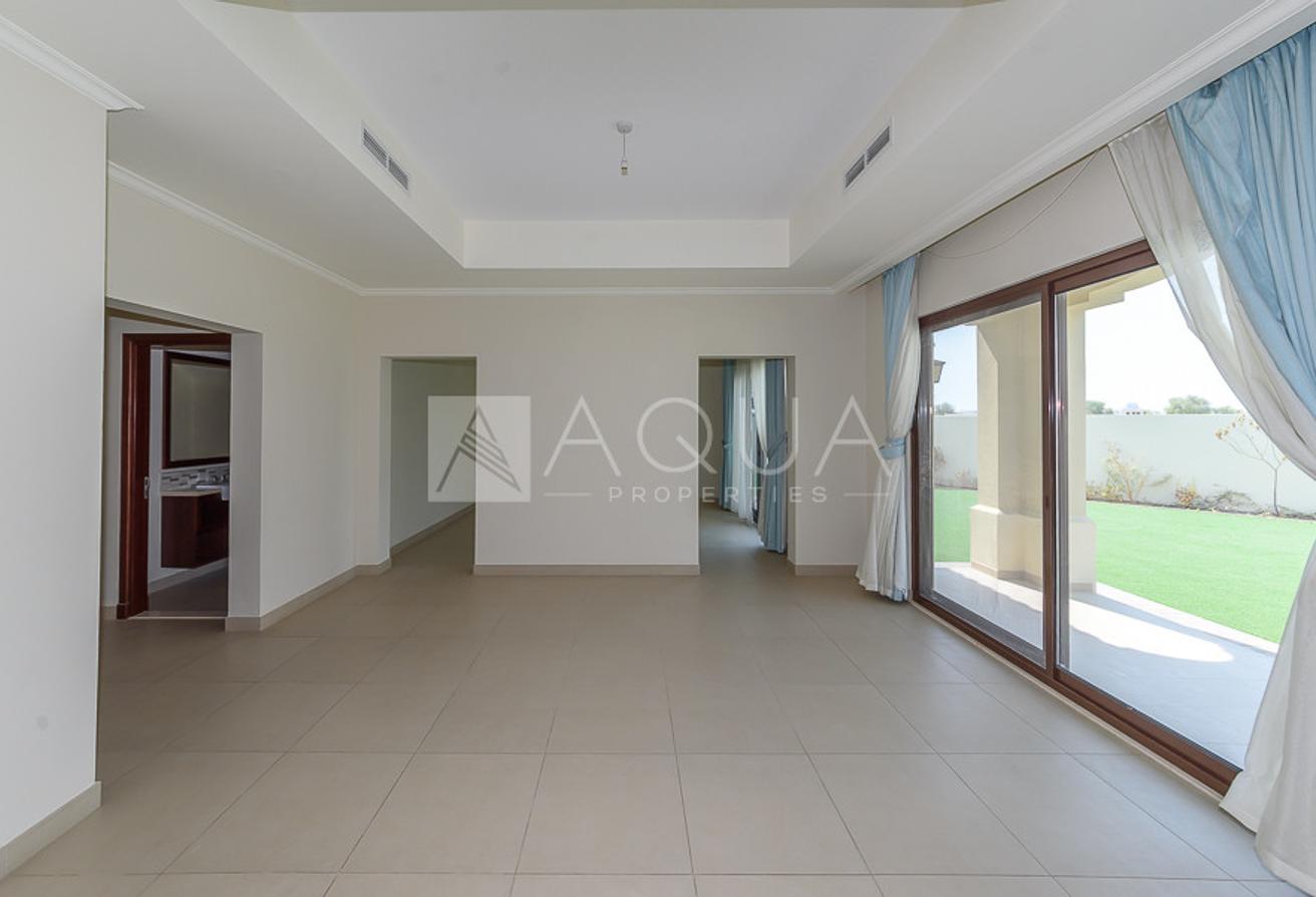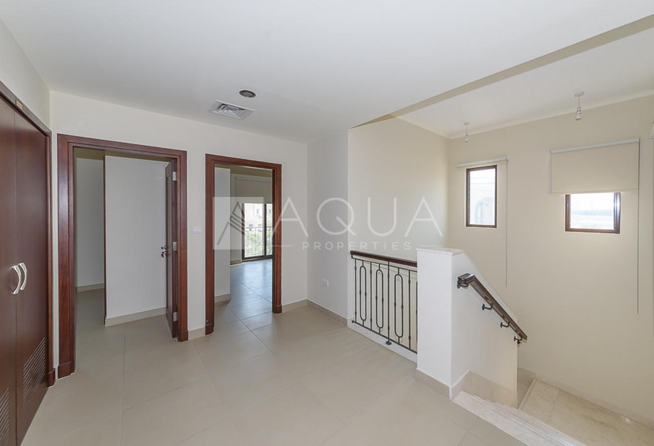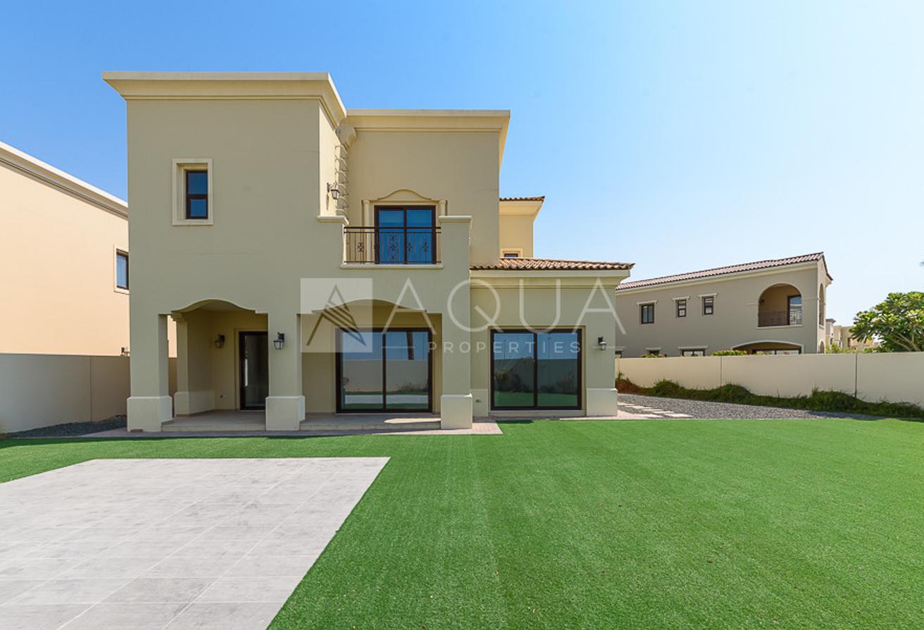 AQUA Properties is delighted to offer this 5-bedroom villa with Spanish architecture located in Lila, Arabian Ranches 2. This corner villa lies on a generous plot of 7,458 square feet and comes with a landscaped garden. There is a guest bedroom on the ground floor, a maid's room, and a spacious living/dining room area with views over the large rear garden. Upstairs you will find 4 very stylish bedrooms - 2 ensuites and 2 shared spacious Jack and Jill bathrooms.