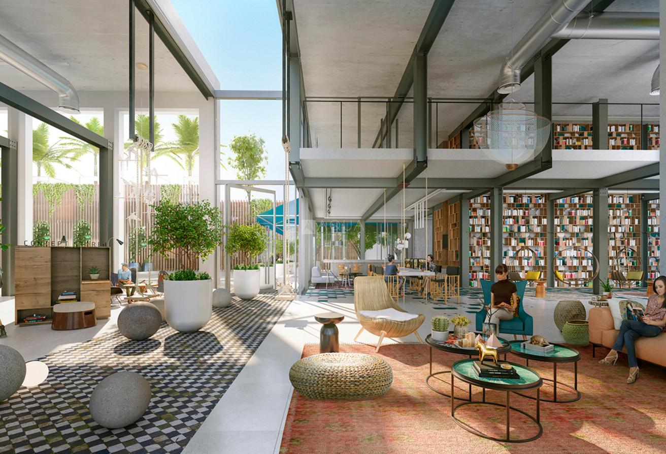 Amenities will include a games room, a gymnasium, a library, a secret garden, a swimming pool, an amphitheater, and indoor and outdoor lounge areas.