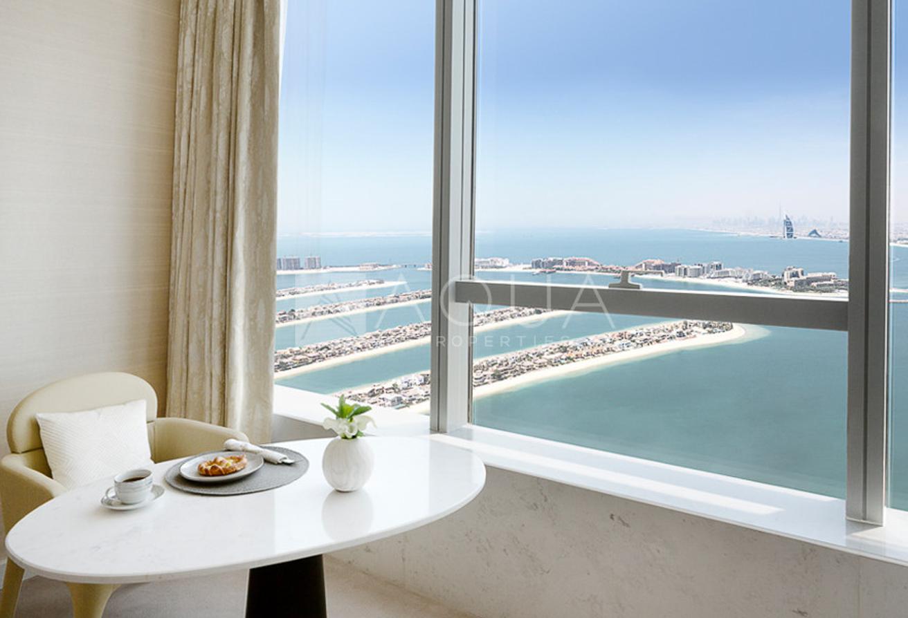 AQUA Properties is happy to present this studio in The Palm Tower, Palm Jumeirah. This immaculate unit is set on a high floor boasting superb sea views.