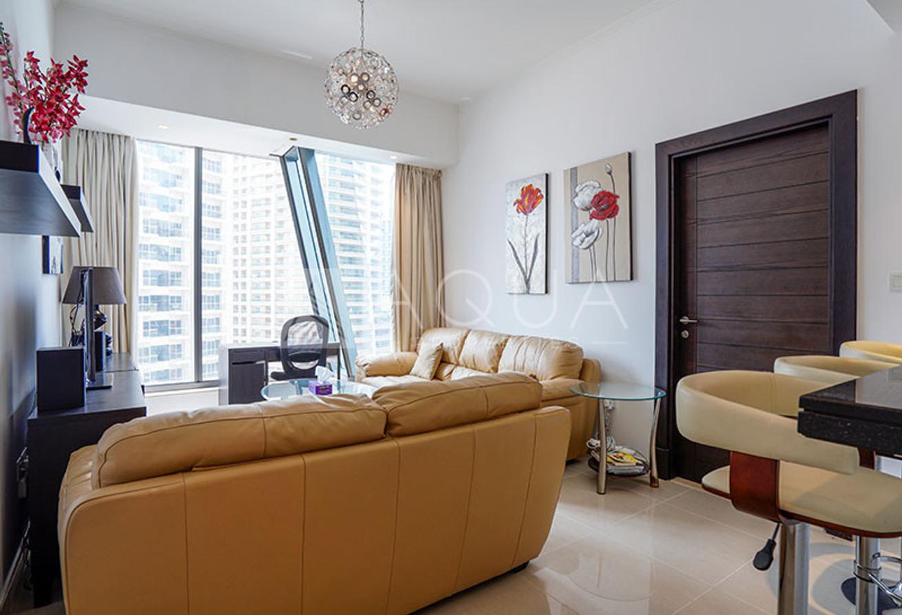 AQUA Properties is proud to offer this amazing 1 bedroom apartment in Silverene Tower B, Dubai Marina. This beautifully furnished unit is up for sale and comes with fantastic features. From the entrance to your right is the guest toilet also called the powder room. Then you find a fully fitted kitchen with an open plan design overlooking the living area. The living room is fully furnished, and on the corner is a small furnished office space. The bedroom is also fully furnished with comfortable bedding and mattress, a fitted wardrobe, and an ensuite bathroom with a unique classy finish. It is a walking distance of the Metro, Dubai Tram, Dubai Marina Mall, and the Dubai Marina Walk.