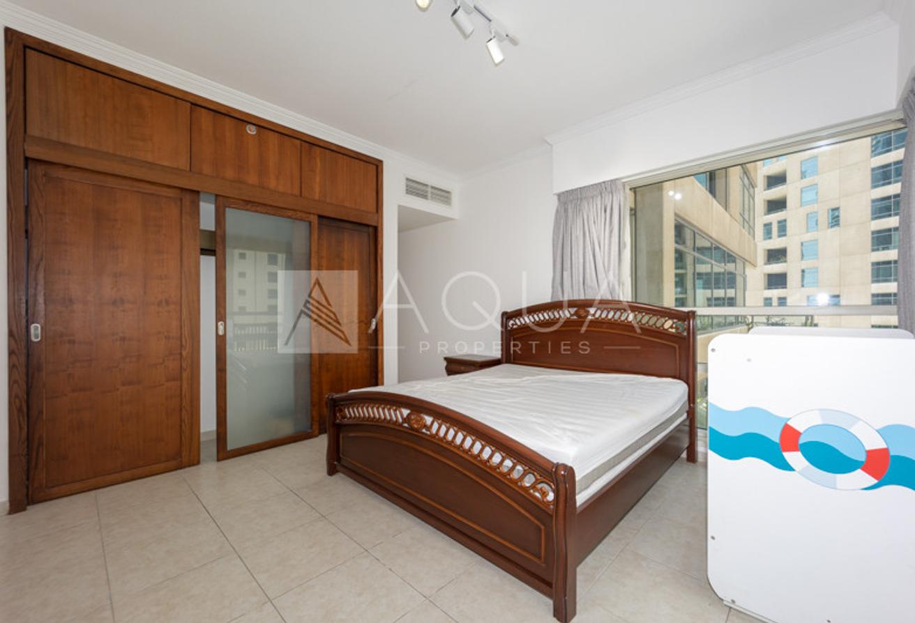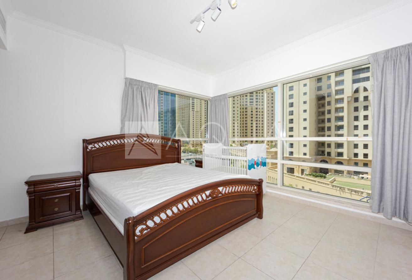 AQUA Properties is pleased to offer this largest 2-bedroom type apartment located in Al Sahab 2, Dubai Marina. The unit invites ample natural light comprising 2 bedrooms with built-in wardrobes, 2 well-maintained bathrooms, a semi-closed kitchen equipped with built-in appliances, a laundry room, and a huge living area with floor-to-ceiling windows connected to a large balcony.