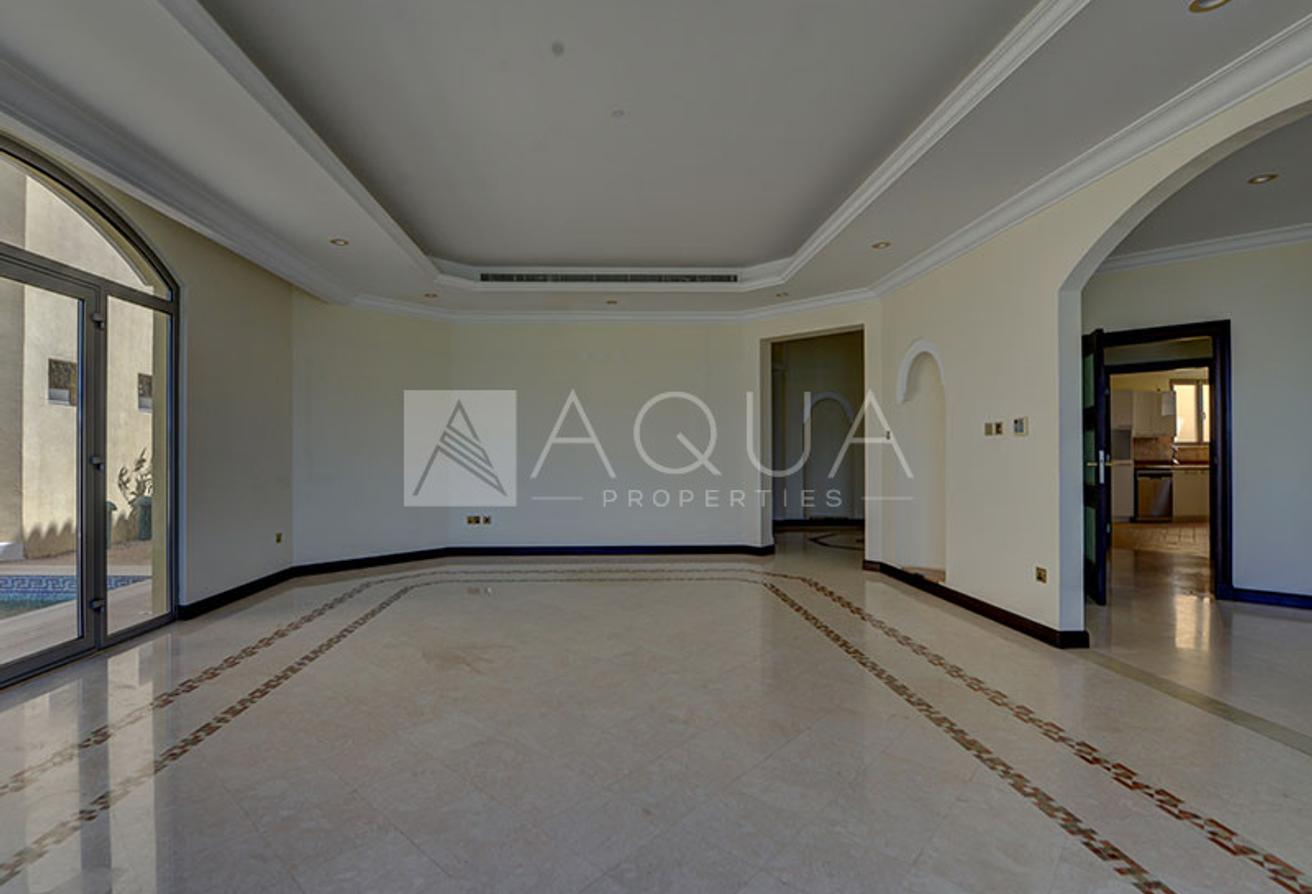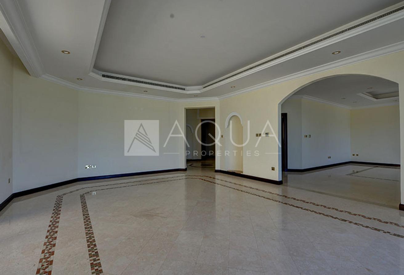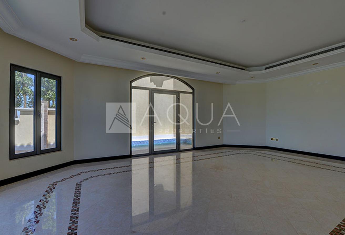 AQUA Properties welcomes to the market this beautifully upgraded 5-bedroom Central Rotunda villa located in Garden Fronds A, one of the best and most sought-after fronds on Palm Jumeirah. The property was fully stripped back to its shell and core and remodeled following LA-inspired modern contemporary design. The villa boasts top-notch quality fixtures and finishes throughout. The property features mesmerizing Atlantis and stunning sunset views.