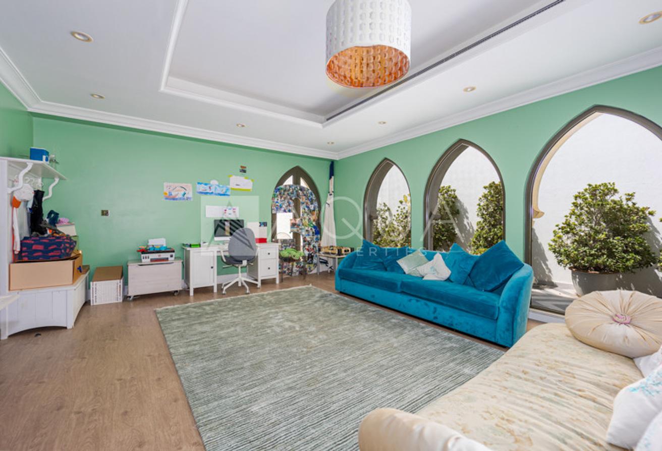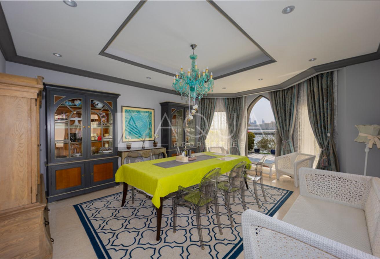 AQUA Properties welcomes to the market this superb Marina-facing 4-bedroom Atrium Entry Garden Home, Palm Jumeirah. The property will be vacant on transfer and is in immaculate condition. This cosy 4-bedroom property is set over a 6,683 sq. ft. plot with direct beach access, a private pool, and stunning views of the bustling marina. The villa's location boasts some of the largest stretches of water.