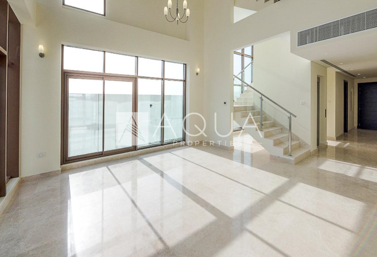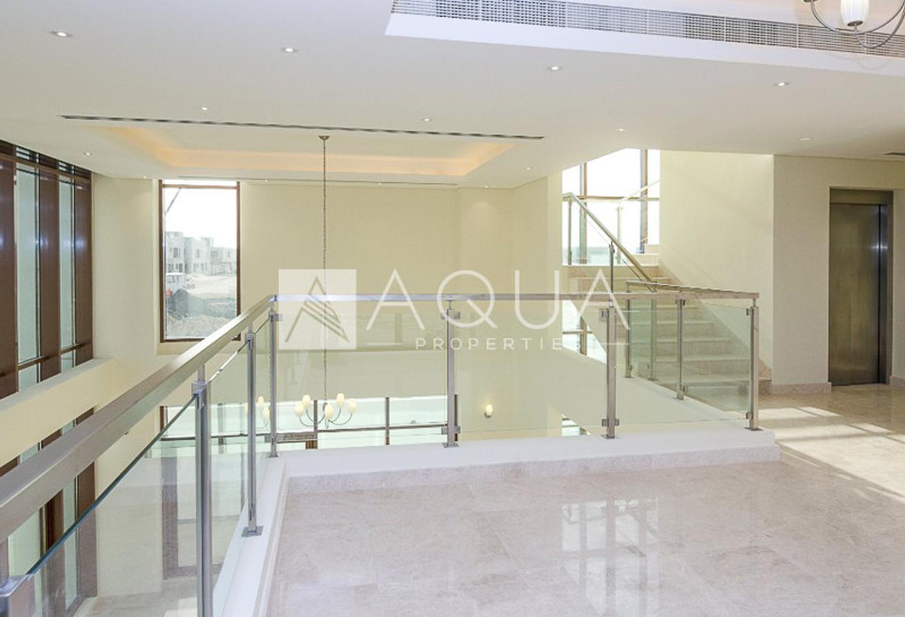 AQUA Properties is pleased to present this exquisite must-see 6-bedroom plus maid's room villa, set right in the heart of Dubai in Grand Views Community, Meydan. The villa's G+2 structure boasting a generous layout ensuring spacious living spaces. This lavish property covers approximately 6,044 square feet of the built-up area comprising one bedroom downstairs, two set on the first level, and an extra three on the top floor. To ensure comfort and convenience, the property has a built-in elevator and a generous rooftop terrace.